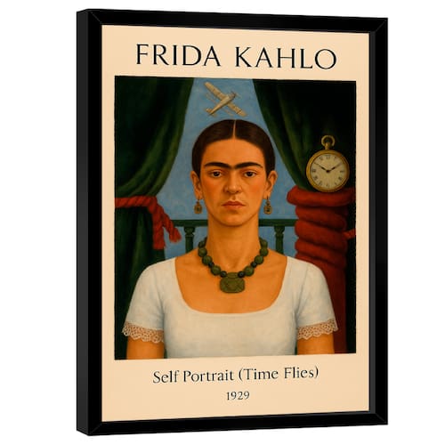 Quadro Decorativo Frida Kahlo Self Portrait, Time Flies Moldura Preta - 84x54cm -