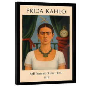 Quadro Decorativo Frida Kahlo Self Portrait, Time Flies Moldura Dourada e Vidro - 180x105cm -