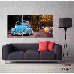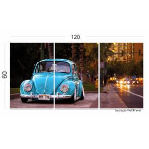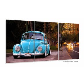 Quadro Decorativo Fusca Azul 120x60 em tecido 3 peças