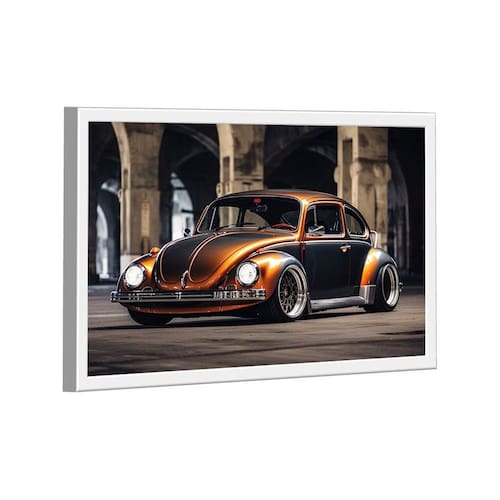 Quadro Fusca Gangster -- BR ARTES Moldura Branca - Grande 118x78 -