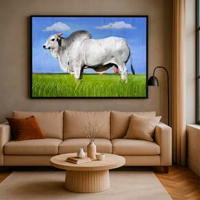 Quadro Decorativo Gado Nelore Moldura Branca - 84x54cm -