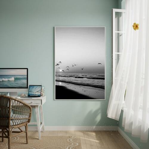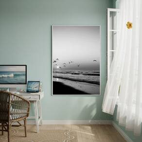 Quadro Decorativo Gaivotas Do Litoral-70x50cm - Cor: Moldura Preta
