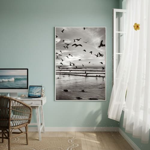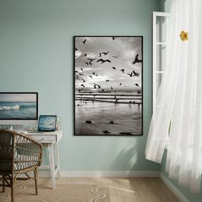 Quadro Decorativo Gaivotas Voando-70x50cm - Cor: Moldura Preta