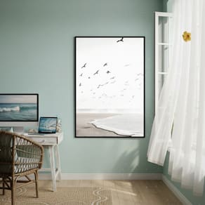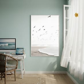 Quadro Decorativo Gaivotas Voando No Céu-70x50cm - Cor: Moldura Branca