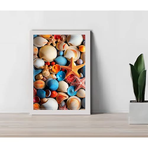 Transforme seu espaço com a serenidade do oceano! Este Quadro Decorativo Galeria Marinha é perfeito para salas e quartos. Com vidro protetor e tamanho A4 (33x25 cm), ele traz um toque de tranquilidade e natureza ao ambiente. A imagem vibrante de várias conchas do mar e estrelas marinhas adiciona um toque de beleza e inspiração. Ideal para quem busca elegância e personalidade na decoração, este quadro é uma excelente escolha para destacar qualquer parede.