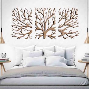 Quadro Decorativo Galhos 3Mm Vazado - Mdf/Cru TAMANHO & INSTALAÇÃO: Tamanho total: 126cm comprimento X 60cm altura Com espaçamento recomendado de 1 cm entre peças, Peças laterais: 40x60 cm | Peça central: 40x60 cm Espaçamento entre as peças: 3 cm A instalação é bem simples, não será preciso fazer sujeira furando a parede pois utilizamos o método bem prático para instalar, contém fita dupla face 3M no verso do quadro. LIMPEZA DO PRODUTO Para limpeza, utilize apenas um pano umedecido com água sem produtos químicos para garantir a durabilidade. ACABAMENTO Nossos produtos são fabricados em MDF com espessura de 6mm cortados a laser. Desta forma terá um produto com acabamento de alta qualidade. Bordas/laterais serão na cor preta feito com a própria máquina de corte a laser, dando acabamento perfeito. GARANTIA / EMBALAGEM Embalagem reforçada e segura para que receba seu produto em perfeito estado. Garantia de produto de qualidade ou seu dinheiro de volta.
