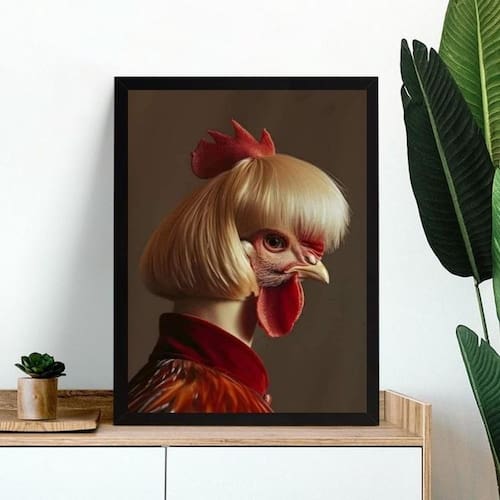 Quadro decorativo galinha disfarçada 24x18cm Cor: moldura branca Informações do produto tire todas as suas dúvidas no descritivo abaixo: decoração para quarto, sala, cozinha, escritório, área gourmet e muito mais. Chega de paredes vazias medidas - cada peça tem 24x18cm a5 . Material do papel - papel fotográfico brilhante de altíssima resolução acabamento - todos os quadros são acompanhados de uma película de acetato para proteção da imagem. - os quadros são embalados de forma segura com plástico bolha com camada dupla de acordo com o tamanho dos quadros. - de 3 meses. Meu quadro chegou. Como posso fixá-lo Você precisa apenas de um martelo e um prego, pois os quadros já vão acompanhados de penduradores. Esta é a forma mais indicada. Caso prefira, você pode utilizar uma fita dupla face neste caso, sugerimos de alta qualidade para evitar que descole e seu quadro caia . Como posso limpar meu quadro A limpeza é feita como um móvel comum da sua casa. Apenas um pano seco ou espanador são suficientes para tal Ean: 7891234530509