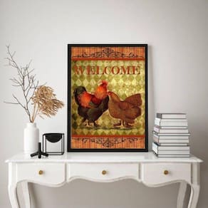 O Quadro Decorativo Galo Galinha Country 24X18Cm - Com Vidro é perfeito para decorar diversos ambientes, como quarto, sala, cozinha, escritório, área gourmet e muito mais. Com medidas de 24x18cm A5 , cada peça é feita em papel fotográfico brilhante de altíssima resolução, garantindo uma imagem nítida e de qualidade.