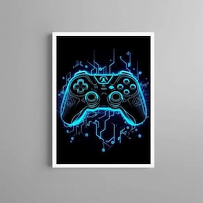 Quadro decorativo gamer azul neon 45x34cm