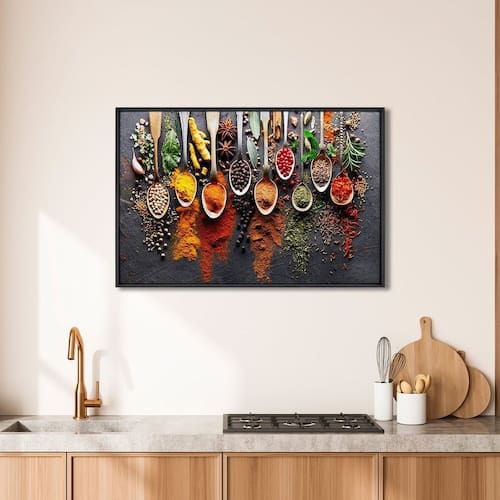 Quadro Decorativo Gastronomia Temperos com 1 Tela Cm ou Cm de Parede para Sala Cozinha Hall 60cm X 9 Preto