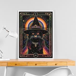 Quadro decorativo gata bruxa 24x18cm Cor: moldura preta Informações do produto tire todas as suas dúvidas no descritivo abaixo: decoração para quarto, sala, cozinha, escritório, área gourmet e muito mais. Chega de paredes vazias medidas - cada peça tem 24x18cm a5 . Material do papel - papel fotográfico brilhante de altíssima resolução acabamento - todos os quadros são acompanhados de uma película de acetato para proteção da imagem. - os quadros são embalados de forma segura com plástico bolha com camada dupla de acordo com o tamanho dos quadros. Garantia - garantia de 3 meses. Meu quadro chegou. Como posso fixá-lo Você precisa apenas de um martelo e um prego, pois os quadros já vão acompanhados de penduradores. Esta é a forma mais indicada. Caso prefira, você pode utilizar uma fita dupla face neste caso, sugerimos de alta qualidade para evitar que descole e seu quadro caia . Como posso limpar meu quadro A limpeza é feita como um móvel comum da sua casa. Apenas um pano seco ou espanador são suficientes para tal