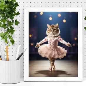 Quadro decorativo gatinha bailarina 33x24cm Cor: moldura preta Informações do produto tire todas as suas dúvidas no descritivo abaixo: decoração para quarto, sala, cozinha, escritório, área gourmet e muito mais. Chega de paredes vazias medidas - cada peça tem 33x24cm a4 . Material do papel - papel fotográfico brilhante de altíssima resolução acabamento - todos os quadros são acompanhados de uma película de acetato para proteção da imagem. - os quadros são embalados de forma segura com plástico bolha com camada dupla de acordo com o tamanho dos quadros. - de 3 meses. Meu quadro chegou. Como posso fixá-lo Você precisa apenas de um martelo e um prego, pois os quadros já vão acompanhados de penduradores. Esta é a forma mais indicada. Caso prefira, você pode utilizar uma fita dupla face neste caso, sugerimos de alta qualidade para evitar que descole e seu quadro caia . Como posso limpar meu quadro A limpeza é feita como um móvel comum da sua casa. Apenas um pano seco ou espanador são suficientes para tal Marca: Não Informado Ean: 7891234545817