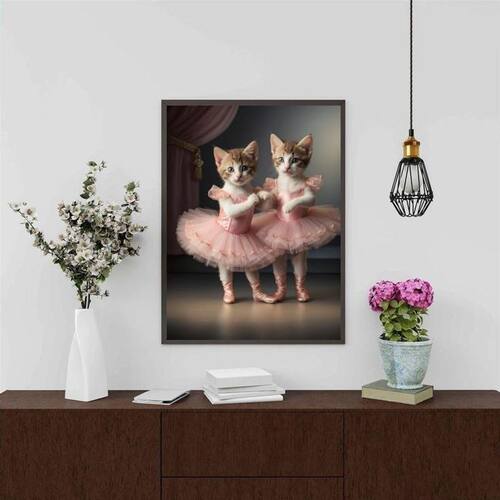 Quadro decorativo gatinhas bailarinas 45x34cm - com vidro Cor: moldura preta Informações do produto tire todas as suas dúvidas no descritivo abaixo: decoração para quarto, sala, cozinha, escritório, área gourmet e muito mais. Chega de paredes vazias medidas - cada peça tem 45x34cm a3 . Material do papel - papel fotográfico brilhante de altíssima resolução acabamento - todos os quadros são acompanhados de vidro para proteção da imagem. - moldura em madeira maciça na cor preta ou branca conforme produto escolhido e pendurador . - os quadros são embalados de forma segura com plástico bolha com camada dupla de acordo com o tamanho dos quadros. Garantia - garantia de 3 meses. Meu quadro chegou. Como posso fixá-lo Você precisa apenas de um martelo e um prego, pois os quadros já vão acompanhados de penduradores. Esta é a forma mais indicada. Como posso limpar meu quadro A limpeza é feita como um móvel comum da sua casa. Apenas um pano seco ou espanador são suficientes para tal Ean: 7891234550873