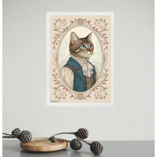 Quadro Decorativo Gatinho Clássico Vintage 45x34cm - Cor: Moldura preta