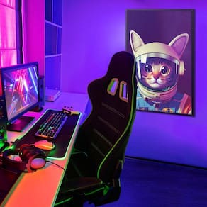 Quadro Decorativo Gato Astronauta Moldura Cx Alta 40x60