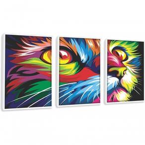 Quadro Decorativo Gato Colorido Com Moldura Branco