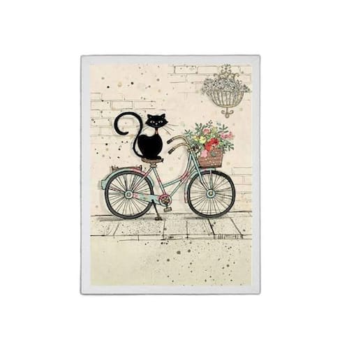 Quadro decorativo gato com bicicleta 45x34cm - com vidro Moldura: madeira branca Informações do produto tire todas as suas dúvidas no descritivo abaixo: decoração para quarto, sala, cozinha, escritório, área gourmet e muito mais. Chega de paredes vazias medidas - cada peça tem 45x34cm a3 . Material do papel - papel fotográfico brilhante de altíssima resolução acabamento - todos os quadros são acompanhados de vidro para proteção da imagem. - moldura em madeira maciça na cor preta e pendurador . - os quadros são embalados de forma segura com plástico bolha com camada dupla de acordo com o tamanho dos quadros. Garantia - garantia de 3 meses. Meu quadro chegou. Como posso fixá-lo Você precisa apenas de um martelo e um prego, pois os quadros já vão acompanhados de penduradores. Esta é a forma mais indicada. Como posso limpar meu quadro A limpeza é feita como um móvel comum da sua casa. Apenas um pano seco ou espanador são suficientes para tal