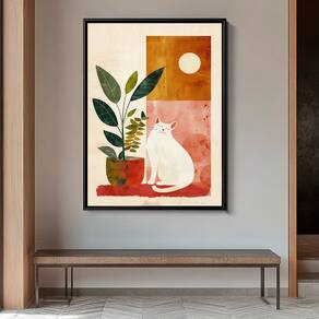 Quadro Decorativo Gato e Vaso Minimalista