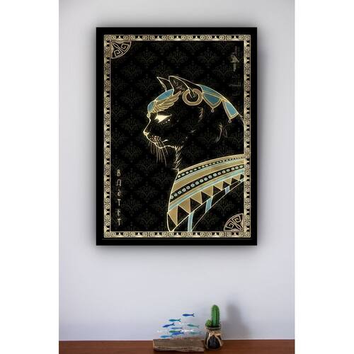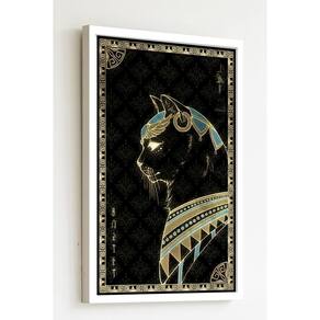 Quadro Decorativo Gato Egípcio Bastet - 70x50cm - Cor: Moldura Branca