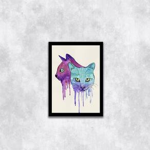 Quadro Decorativo Gato Estilo Aquarela 45x34cm - com vidro - Moldura: Madeira branca
