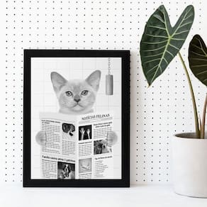 Quadro decorativo gato lendo jornal no banheiro 24x18cm Moldura: madeira branca Informações do produto tire todas as suas dúvidas no descritivo abaixo: decoração para quarto, sala, cozinha, escritório, área gourmet e muito mais. Chega de paredes vazias medidas - cada peça tem 24x18cm a5 . Material do papel - papel fotográfico brilhante de altíssima resolução acabamento - todos os quadros são acompanhados de uma película de acetato para proteção da imagem. - os quadros são embalados de forma segura com plástico bolha com camada dupla de acordo com o tamanho dos quadros. Garantia - garantia de 3 meses. Meu quadro chegou. Como posso fixá-lo Você precisa apenas de um martelo e um prego, pois os quadros já vão acompanhados de penduradores. Esta é a forma mais indicada. Caso prefira, você pode utilizar uma fita dupla face neste caso, sugerimos de alta qualidade para evitar que descole e seu quadro caia . Como posso limpar meu quadro A limpeza é feita como um móvel comum da sua casa. Apenas um pano seco ou espanador são suficientes para tal Ean: 7899489314479
