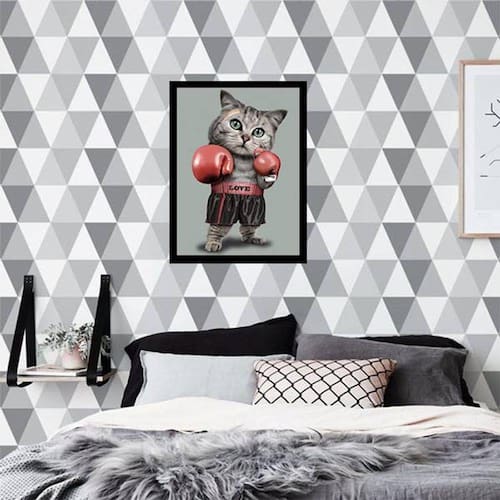 Quadro Decorativo Gato Lutador de Boxe - Tamanho: A4 (20 x 30) / Acabamento: Película de acetato / Moldura: Madeira preta