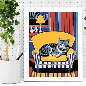 Quadro decorativo gato na sala 24x18cm - com vidro Cor: moldura branca Informações do produto tire todas as suas dúvidas no descritivo abaixo: decoração para quarto, sala, cozinha, escritório, área gourmet e muito mais. Chega de paredes vazias medidas - cada peça tem 24x18cm a5 . Material do papel - papel fotográfico brilhante de altíssima resolução acabamento - todos os quadros são acompanhados de vidro para proteção da imagem. - moldura em madeira maciça na cor preta ou branca conforme produto escolhido e pendurador . - os quadros são embalados de forma segura com plástico bolha com camada dupla de acordo com o tamanho dos quadros. Garantia - garantia de 3 meses. Meu quadro chegou. Como posso fixá-lo Você precisa apenas de um martelo e um prego, pois os quadros já vão acompanhados de penduradores. Esta é a forma mais indicada. Como posso limpar meu quadro A limpeza é feita como um móvel comum da sua casa. Apenas um pano seco ou espanador são suficientes para tal
