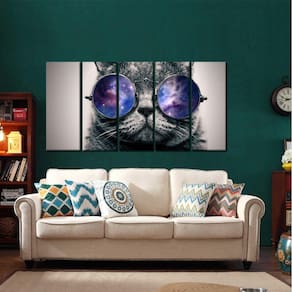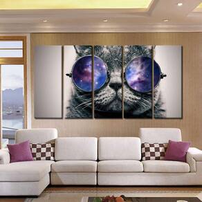 Quadro Decorativo Gato Pisicodélico 140 x 65cm em Tecido