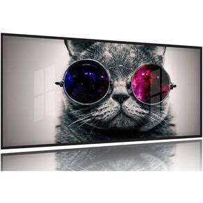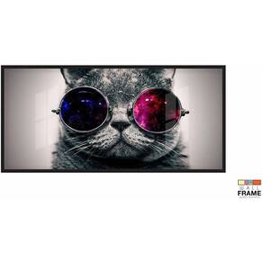 Quadro Decorativo Gato Pisicodelico Cinza 130x60 Moldura Preta 2x2