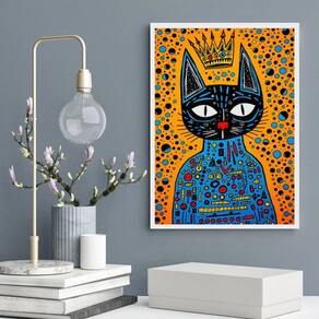 Quadro Decorativo Gato Pop Arte Cores Vibrantes - Coroa 45x34cm - Cor: Moldura branca