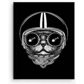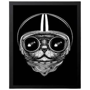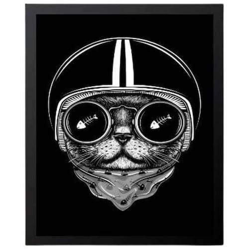 Quadro Decorativo Gato Preto Capacete Com Vidro 24X18Cm
