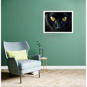 Quadro decorativo gato preto olhos - 50x70cm Cor: moldura preta Informações do produto tire todas as suas dúvidas no descritivo abaixo: decoração para quarto, sala, cozinha, escritório, área gourmet e muito mais. Chega de paredes vazias medidas - cada peça tem 70x50cm . Material do papel - papel fotográfico brilhante de altíssima resolução acabamento - todos os quadros são acompanhados de vidro para proteção da imagem. - moldura em madeira maciça na cor preta ou branca conforme produto escolhido e pendurador. - os quadros são embalados de forma segura com plástico bolha com camada dupla de acordo com o tamanho dos quadros. - de 3 meses. Meu quadro chegou. Como posso fixá-lo Você precisa apenas de um martelo e um prego, pois os quadros já vão acompanhados de penduradores. Esta é a forma mais indicada. Como posso limpar meu quadro A limpeza é feita como um móvel comum da sua casa. Apenas um pano seco ou espanador são suficientes para tal