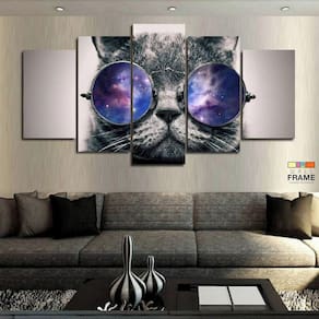 Quadro Decorativo Gato Psicodélico 63x129 cm em Tecido