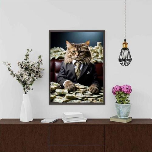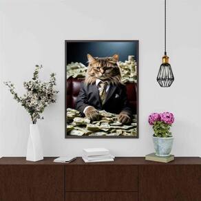 Quadro decorativo gato rico 24x18cm - com vidro Cor: moldura preta Informações do produto tire todas as suas dúvidas no descritivo abaixo: decoração para quarto, sala, cozinha, escritório, área gourmet e muito mais. Chega de paredes vazias medidas - cada peça tem 24x18cm a5 . Material do papel - papel fotográfico brilhante de altíssima resolução acabamento - todos os quadros são acompanhados de vidro para proteção da imagem. - moldura em madeira maciça na cor preta ou branca conforme produto escolhido e pendurador . - os quadros são embalados de forma segura com plástico bolha com camada dupla de acordo com o tamanho dos quadros. Garantia - garantia de 3 meses. Meu quadro chegou. Como posso fixá-lo Você precisa apenas de um martelo e um prego, pois os quadros já vão acompanhados de penduradores. Esta é a forma mais indicada. Como posso limpar meu quadro A limpeza é feita como um móvel comum da sua casa. Apenas um pano seco ou espanador são suficientes para tal