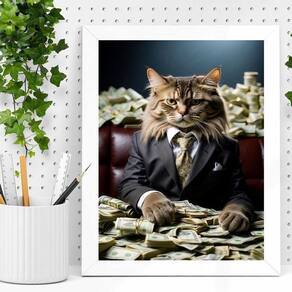 Quadro decorativo gato rico 33x24cm Cor: moldura preta Informações do produto tire todas as suas dúvidas no descritivo abaixo: decoração para quarto, sala, cozinha, escritório, área gourmet e muito mais. Chega de paredes vazias medidas - cada peça tem 33x24cm a4 . Material do papel - papel fotográfico brilhante de altíssima resolução acabamento - todos os quadros são acompanhados de uma película de acetato para proteção da imagem. - os quadros são embalados de forma segura com plástico bolha com camada dupla de acordo com o tamanho dos quadros. Garantia - garantia de 3 meses. Meu quadro chegou. Como posso fixá-lo Você precisa apenas de um martelo e um prego, pois os quadros já vão acompanhados de penduradores. Esta é a forma mais indicada. Caso prefira, você pode utilizar uma fita dupla face neste caso, sugerimos de alta qualidade para evitar que descole e seu quadro caia . Como posso limpar meu quadro A limpeza é feita como um móvel comum da sua casa. Apenas um pano seco ou espanador são suficientes para tal