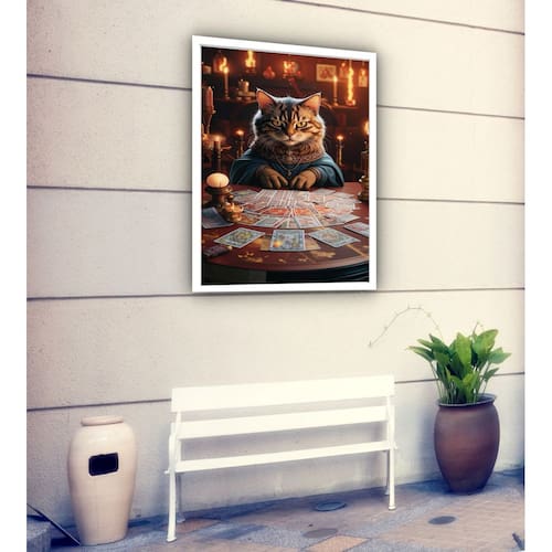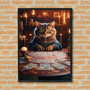 Quadro Decorativo Gato Tarot - 70x50cm - Cor: Moldura Preta