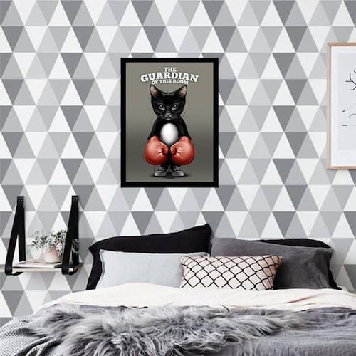 Quadro Decorativo Gato The Guardian - Tamanho: A4 (20 x 30) / Acabamento: Película de acetato / Moldura: Madeira preta