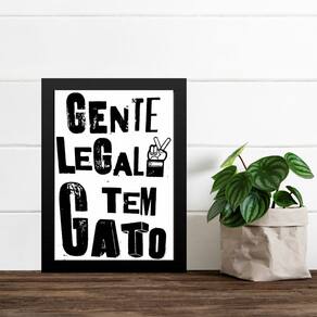 Quadro Decorativo Gente Legal Tem Gato 45x34cm - Cor: Moldura branca