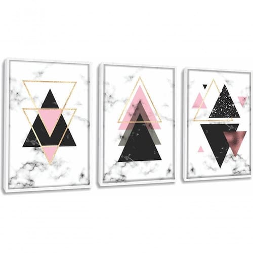 Quadro Decorativo Geométrico Triângulo Com Moldura Branco