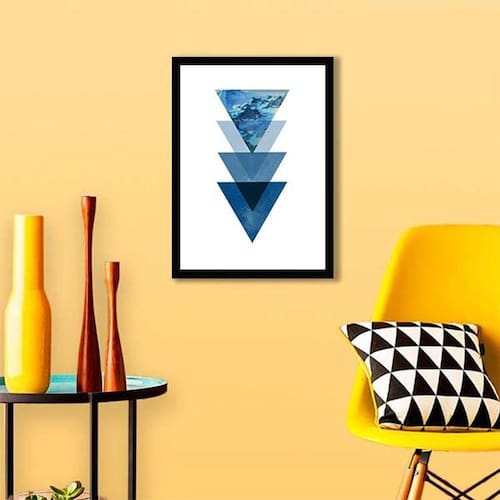 Quadro Decorativo Geométrico Triângulos Azuis I - Tamanho: A4 (20 x 30) / Acabamento: Película de acetato / Moldura: Madeira preta