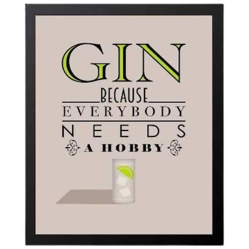 Itens inclusos 01 Quadro Decorativo Gin Because Everybody Needs A Hobby 24 X 18 Cm