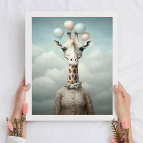 Quadro decorativo girafa com balões 33x24cm Cor: moldura branca Informações do produto tire todas as suas dúvidas no descritivo abaixo: decoração para quarto, sala, cozinha, escritório, área gourmet e muito mais. Chega de paredes vazias medidas - cada peça tem 33x24cm a4 . Material do papel - papel fotográfico brilhante de altíssima resolução acabamento - todos os quadros são acompanhados de uma película de acetato para proteção da imagem. - os quadros são embalados de forma segura com plástico bolha com camada dupla de acordo com o tamanho dos quadros. Garantia - garantia de 3 meses. Meu quadro chegou. Como posso fixá-lo Você precisa apenas de um martelo e um prego, pois os quadros já vão acompanhados de penduradores. Esta é a forma mais indicada. Caso prefira, você pode utilizar uma fita dupla face neste caso, sugerimos de alta qualidade para evitar que descole e seu quadro caia . Como posso limpar meu quadro A limpeza é feita como um móvel comum da sua casa. Apenas um pano seco ou espanador são suficientes para tal Ean: 7891234532688