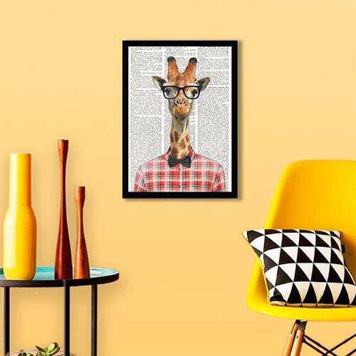 Com o Quadro Decorativo da Quadros On-Line você transforma a decoração do seu ambiente, com beleza e bom gosto. Preencha aquela parede vazia com um quadro de alta qualidade, papel fotográfico brilhante de altíssima resolução e moldura em madeira maciça. Para maior proteção, a peça ainda conta com uma película de acetato. Características: - Papel fotográfico brilhante de altíssima resolução - Película de acetato para proteção da imagem - Moldura em madeira maciça - Pendurador móvel que pode ser retirado facilmente - Pode ser fixado com fita dupla face Especificações técnicas Marca: Quadros On-Line Modelo: Girafa Intelectual Material: Papel fotográfico brilhante Acabamento: Película de acetato Moldura: Madeira Cor moldura: Preto Tamanho: 45 x 34 cm - A3 Fixação: Prego ou fita dupla face de alta qualidade Acompanha pendurador: Sim : 3 meses Dica de limpeza A limpeza é feita como um móvel comum da sua casa. Apenas um pano seco ou espanador são suficientes para tal. Marca: Não Informado
