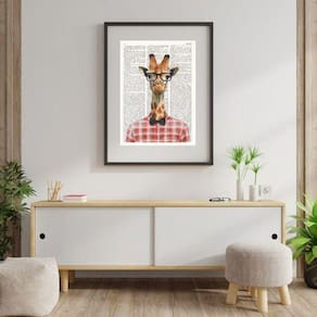 Quadro decorativo girafa nerd - 60x48cm Moldura: madeira preta Informações do produto tire todas as suas dúvidas no descritivo abaixo: decoração para quarto, sala, cozinha, escritório, área gourmet e muito mais. Chega de paredes vazias medidas - cada peça tem 60x48cm . Material do papel - papel fotográfico brilhante de altíssima resolução acabamento - todos os quadros são acompanhados de vidro para proteção da imagem. - moldura em madeira maciça na cor preta ou branca conforme produto escolhido e pendurador. - paspatur branco com 7cm de largura - os quadros são embalados de forma segura com plástico bolha com camada dupla de acordo com o tamanho dos quadros. Garantia - garantia de 3 meses. Meu quadro chegou. Como posso fixá-lo Você precisa apenas de um martelo e um prego, pois os quadros já vão acompanhados de penduradores. Esta é a forma mais indicada. Como posso limpar meu quadro A limpeza é feita como um móvel comum da sua casa. Apenas um pano seco ou espanador são suficientes para tal
