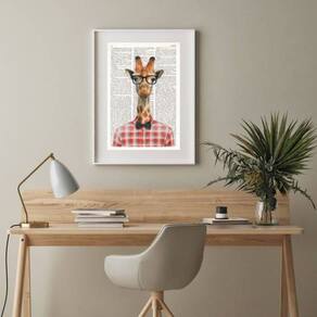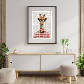 Quadro Decorativo Girafa Nerd - 60x48cm - Moldura: Madeira preta