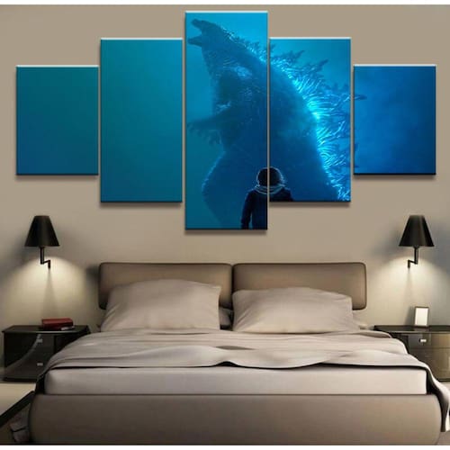 Quadro Decorativo Godzilla-King 5 peças 130x65 cm em tecido