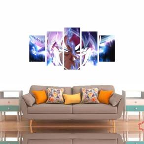 Especificações Técnicas Produto: Quadro Decorativo Modelo: Goku Dragon Ball Z Medidas: 1x 80x30cm / 2x 65x30cm / 2x 50x30cm. Quantidade de Peças: 5 Peças Material: Madeira e tecido sintético Ideal para: Escritórios, sala, hall e demais ambientes