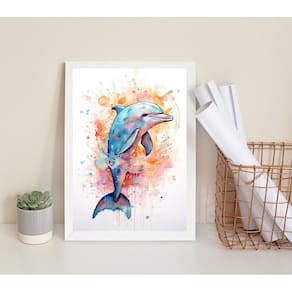 Quadro decorativo golfinho colorido- aquarela 24x18cm - com vidro Moldura: madeira branca Informações do produto tire todas as suas dúvidas no descritivo abaixo: decoração para quarto, sala, cozinha, escritório, área gourmet e muito mais. Chega de paredes vazias medidas - cada peça tem 24x18cm a5 . Material do papel - papel fotográfico brilhante de altíssima resolução acabamento - todos os quadros são acompanhados de vidro para proteção da imagem. - moldura em madeira maciça na cor preta ou branca conforme produto escolhido e pendurador . - os quadros são embalados de forma segura com plástico bolha com camada dupla de acordo com o tamanho dos quadros. Garantia - garantia de 3 meses. Meu quadro chegou. Como posso fixá-lo Você precisa apenas de um martelo e um prego, pois os quadros já vão acompanhados de penduradores. Esta é a forma mais indicada. Como posso limpar meu quadro A limpeza é feita como um móvel comum da sua casa. Apenas um pano seco ou espanador são suficientes para tal