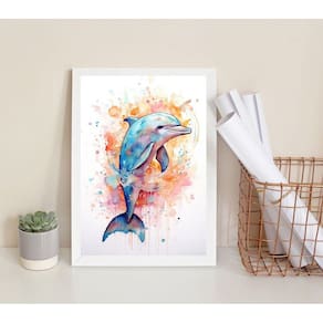 Quadro decorativo golfinho colorido- aquarela 33x24cm - com vidro Moldura: madeira preta Informações do produto tire todas as suas dúvidas no descritivo abaixo: decoração para quarto, sala, cozinha, escritório, área gourmet e muito mais. Chega de paredes vazias medidas - cada peça tem 33x24cm a4 . Material do papel - papel fotográfico brilhante de altíssima resolução acabamento - todos os quadros são acompanhados de vidro para proteção da imagem. - moldura em madeira maciça na cor preta ou branca conforme produto escolhido e pendurador . - os quadros são embalados de forma segura com plástico bolha com camada dupla de acordo com o tamanho dos quadros. Garantia - garantia de 3 meses. Meu quadro chegou. Como posso fixá-lo Você precisa apenas de um martelo e um prego, pois os quadros já vão acompanhados de penduradores. Esta é a forma mais indicada. Como posso limpar meu quadro A limpeza é feita como um móvel comum da sua casa. Apenas um pano seco ou espanador são suficientes para tal Ean: 7894502224469