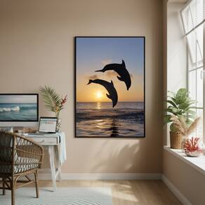 Quadro Decorativo Golfinhos-70x50cm - Cor: Moldura Branca
